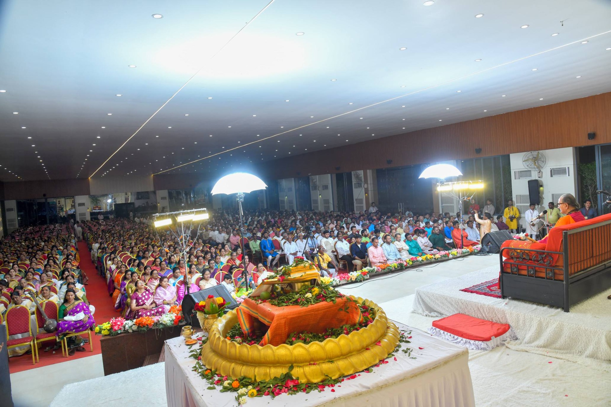 On Wednesday, February 26, 2025, on the auspicious occasion of Mahashivratri, a grand ceremony of darshan, bhajan, satsang and Shivshakti meditation initiation of His Holiness Shri Gurudev Srinivas Ji was organized by Shri Vidya Akhand Mahayoga Satsang Sabha from 6 pm to 10.30 pm at Padmavati Convention Hall, Solapur. More than two thousand devotees participated enthusiastically in this special ceremony.